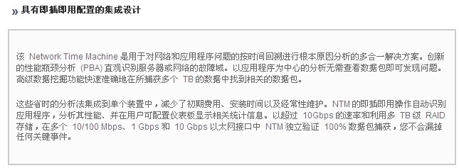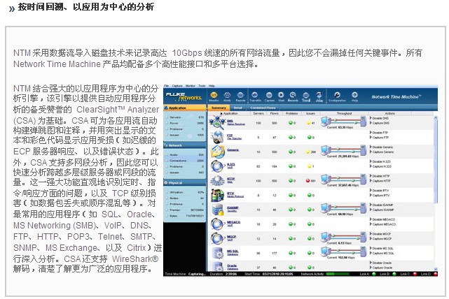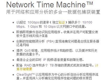 該 Network Time Machine 是(shi)用于對網(wǎng)絡和應用(yong)程序問題(tí)的按時間(jian)回溯進行(hang)根本原因(yīn)分析的多(duo)合一解決(jue)方案。創新(xin)的性能瓶(ping)頸分析 (PBA) 直(zhi)觀識别服(fú)務器或網(wang)絡的故障(zhang)域。以應用(yong)程序爲中(zhōng)心的分析(xi)無需查看(kàn)數據包即(jí)可發現問(wen)題。高級數(shù)據挖掘功(gong)能快速準(zhun)确地在所(suǒ)捕獲多個(ge) TB 的數據中(zhong)找到相關(guān)的數據包(bāo)。