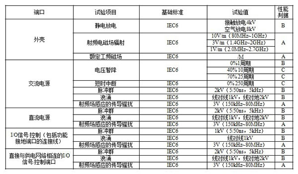表1. 工業場所用(yòng)設備的抗擾度試(shì)驗要求