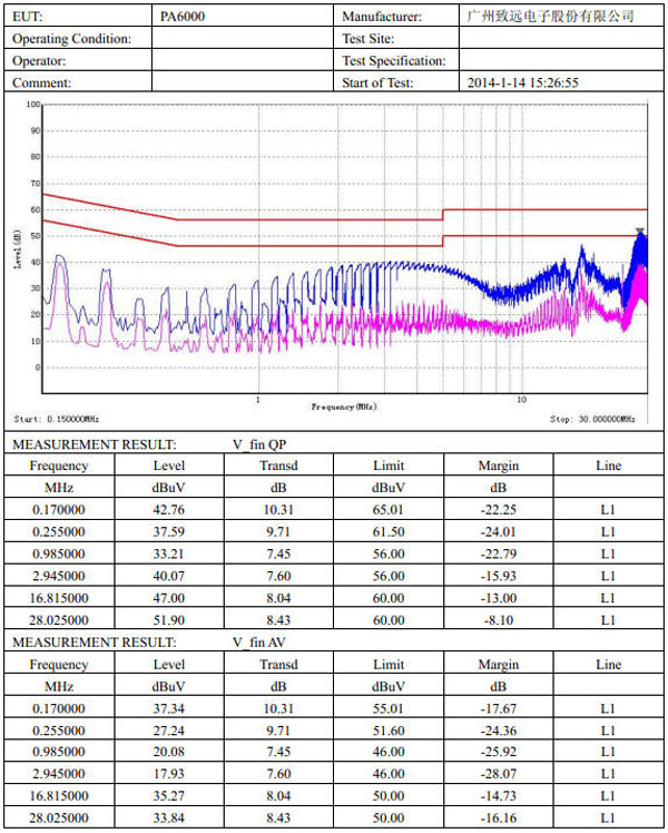 圖4. PA6000輻射發射試驗(yan)測量結果