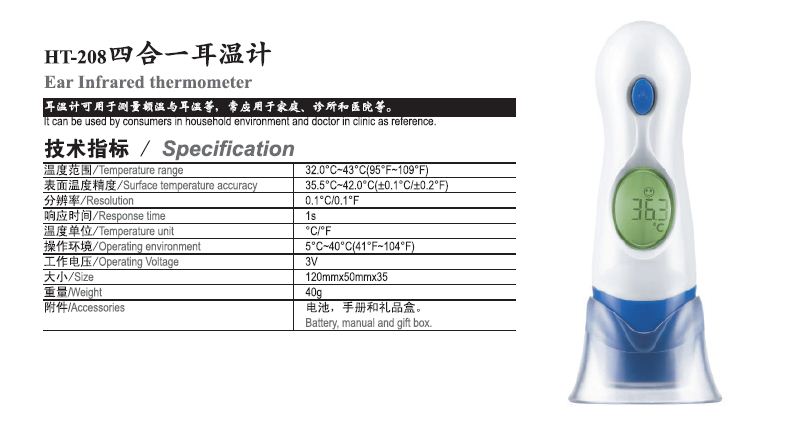 您的位置: 産(chǎn)品與服務 >> HT208四(si)合一耳溫計(jì)、HT-50耳溫計
