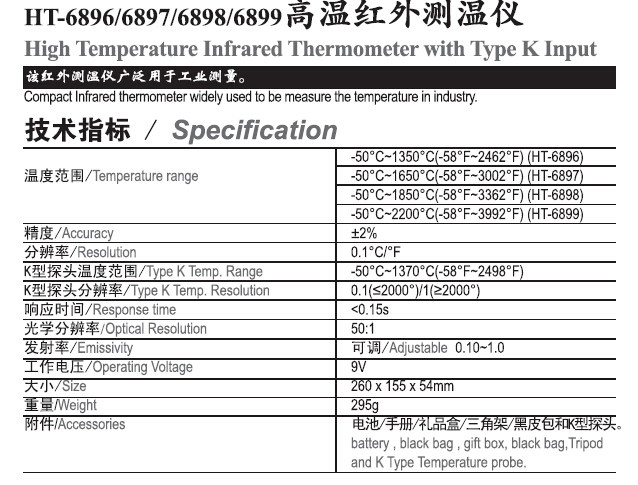 HT-6896/6897/6898/6899高溫紅外(wai)測溫儀