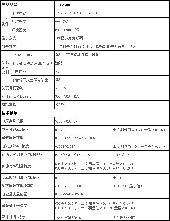 3. 電壓、電流(liú)、功率可設置上(shang)下限報警,電能(neng)量可設置上限(xiàn)報警;