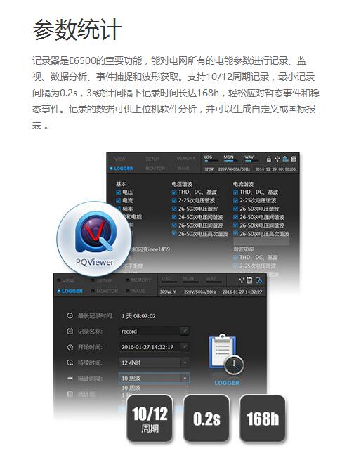 E6500電能質(zhì)量和能(neng)效分析(xī)儀,支持(chí)50Hz/60Hz電網(wǎng)工頻系(xi)統測量(liàng),它可記(jì)錄分析(xi)現場的(de)諧波、電(dian)壓、電流(liu)、頻率、波(bo)動、閃變(bian)、功率和(hé)三相不(bu)平衡等(děng)所有電(diàn)能質量(liang)參數,具(ju)備高級(jí)電能質(zhì)量測量(liang)功能,同(tóng)時提供(gòng)了專業(ye)的上位(wèi)機分析(xī)軟件進(jìn)行二次(ci)分析,爲(wèi)用戶提(tí)供最準(zhǔn)确的電(dian)力故障(zhang)診斷分(fèn)析。