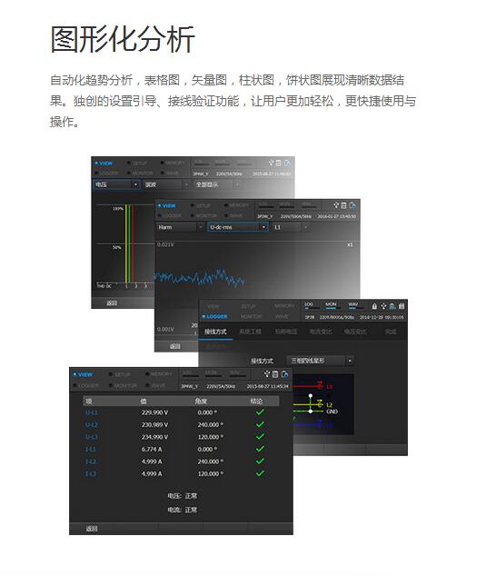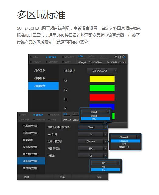 标(biāo)準支持(chi):IEC61000-4-30 A級标(biāo)準/IEC61000-4-7諧(xié)波測量(liàng)/EC61000-4-15閃變(bian)測量/行業領(lǐng)先測量(liang)精度0.1