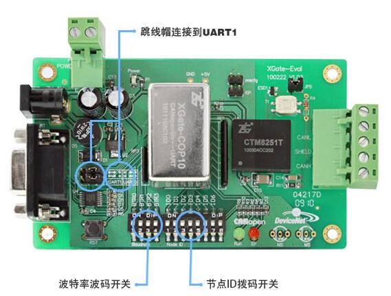 如圖所示,爲(wèi)XGate-COP10評估闆。用戶(hu)可以通過RS232串(chuan)口直接對模(mo)塊操🌍作。CTM8251T爲緻(zhì)遠電子生産(chǎn)的帶2500VDC隔離的(de)CAN收發器模塊(kuai)。