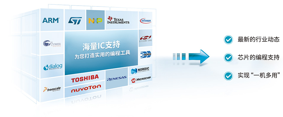 依靠着與(yu)各大廠商的良(liáng)好關系,現已支(zhī)持了各種廠商(shang)的🐇MCU,并且能夠準(zhǔn)确、及時的提供(gòng)各種新芯片的(de)編程支持,最大(dà)化滿☔足客戶的(de)需求。