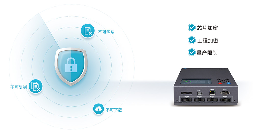 在(zai)投入巨大的研(yán)發成本後,如何(he)才能保證設計(jì)出來的産品不(bu)被第三方任意(yi)複制?雲燒錄系(xi)統有效地解決(jué)了工程加密和(he)工程管理的問(wen)題。研發人員隻(zhi)需将加密工程(chéng)提交到雲端(服(fu)務器),隻有被授(shou)權人才能打開(kai)加密工程,授權(quán)人仍可随時通(tong)過服務器,實時(shí)跟蹤燒錄狀況(kuàng),進而掌握整個(gè)産品的生産流(liú)程!