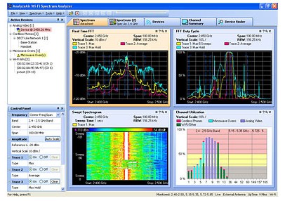 使用(yòng) AnalyzeAir Wi-Fi 頻譜分(fèn)析儀Wi-Fi 智(zhì)能頻譜(pu)分析儀(yi)能夠清(qing)晰地看(kàn)🛀到 802.11b/g 和 802.11a WLAN 使(shi)用的🐉未(wei)經許可(kě)的 2.4 GHz 和 5 GHz 頻(pin)率。即便(biàn)不是 RF 工(gōng)程師,也(ye)能夠快(kuai)速定位(wei)和⭕解決(jue)🤟無線網(wang)絡的問(wèn)題。AnalyzeAir 軟件(jiàn)将 RF 專家(jia)常用的(de) RF 工具集(jí)成于一(yī)個易于(yú)使用的(de)界面中(zhong),讓您能(néng)夠方便(biàn)地實現(xian) RF 分析自(zi)動化。