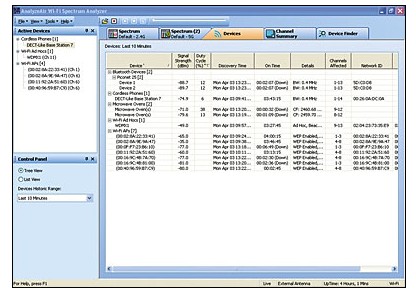 AnalyzeAir 軟件能(neng)夠解釋(shi)頻譜或(huo)信道中(zhōng)的 RF 能量(liàng),并列出(chū)正在📞傳(chuan)送信号(hào)的✉️設備(bei) ­– 即與通(tōng)過識别(bié)能量脈(mo)沖認出(chū)相應相(xiang)關的🔞實(shi)際設備(bèi)🌈。使用 AnalyzeAir 軟(ruan)件,您可(ke)以即時(shi)發現并(bìng)快速識(shi)别問題(ti)。若要了(le)解有關(guan)㊙️某個設(shè)備的更(geng)多信息(xi),隻需單(dan)擊此設(she)備。AnalyzeAir 軟件(jian)的用戶(hù)友好界(jiè)面讓您(nin)觸手可(kě)得很多(duo)有價值(zhí)的信息(xi),從而迅(xun)速解決(jue)網絡問(wen)🌈題。AnalyzeAir 能夠(gòu)自動識(shi)别藍牙(yá)設備、無(wú)繩電話(hua)、微波爐(lú)、模拟攝(shè)像機和(hé) RF 幹擾設(shè)⭐備。