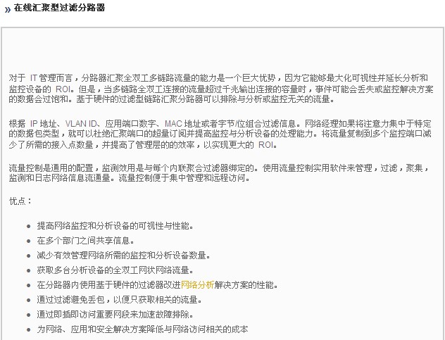 分路器解(jie)決方案是一(yī)個系統,該系(xì)統旨在通過(guo)電腦網絡複(fú)制流量運行(hang),然後将其發(fa)送到探頭和(he)分析儀,以提(tí)高網絡效率(lǜ)或安全性。Fluke Networks 的(de)分路器功能(neng)行業領先,創(chuàng)新力強,品質(zhì)卓越。我們的(de)分⭕路器解決(jué)方❓案适用于(yu)各種 IT 團隊,包(bao)括網絡運營(yíng)、網絡工程、信(xìn)息安全、質量(liàng)保證、Web 分析和(hé)應用程序分(fen)析。