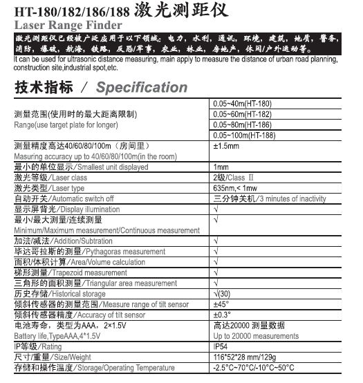 您(nin)的位置: 産品與(yǔ)服務 >> HT-180/182/186/188 激光測距(ju)儀